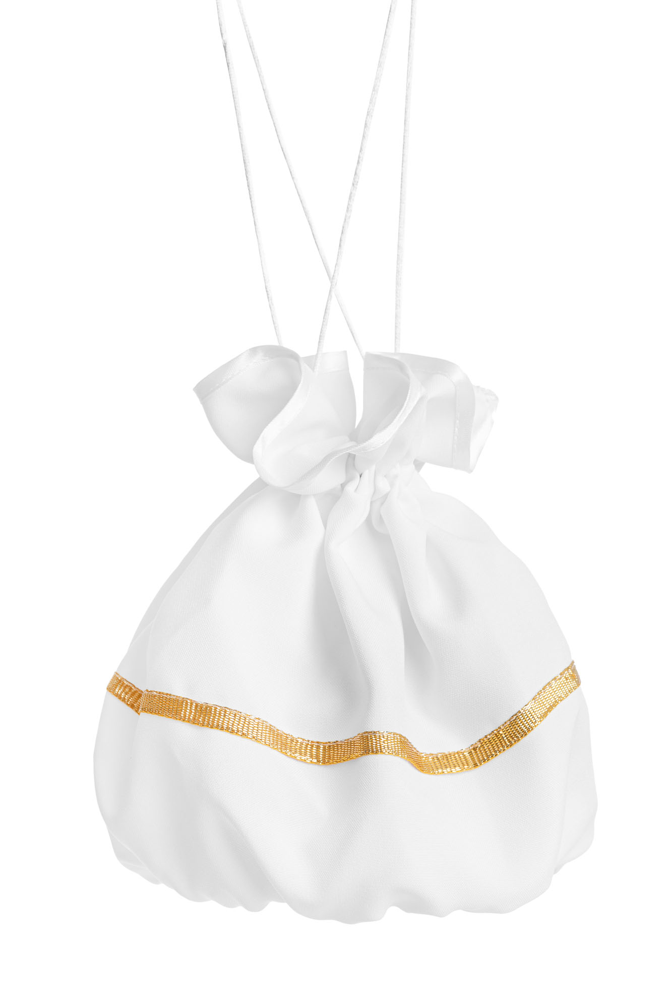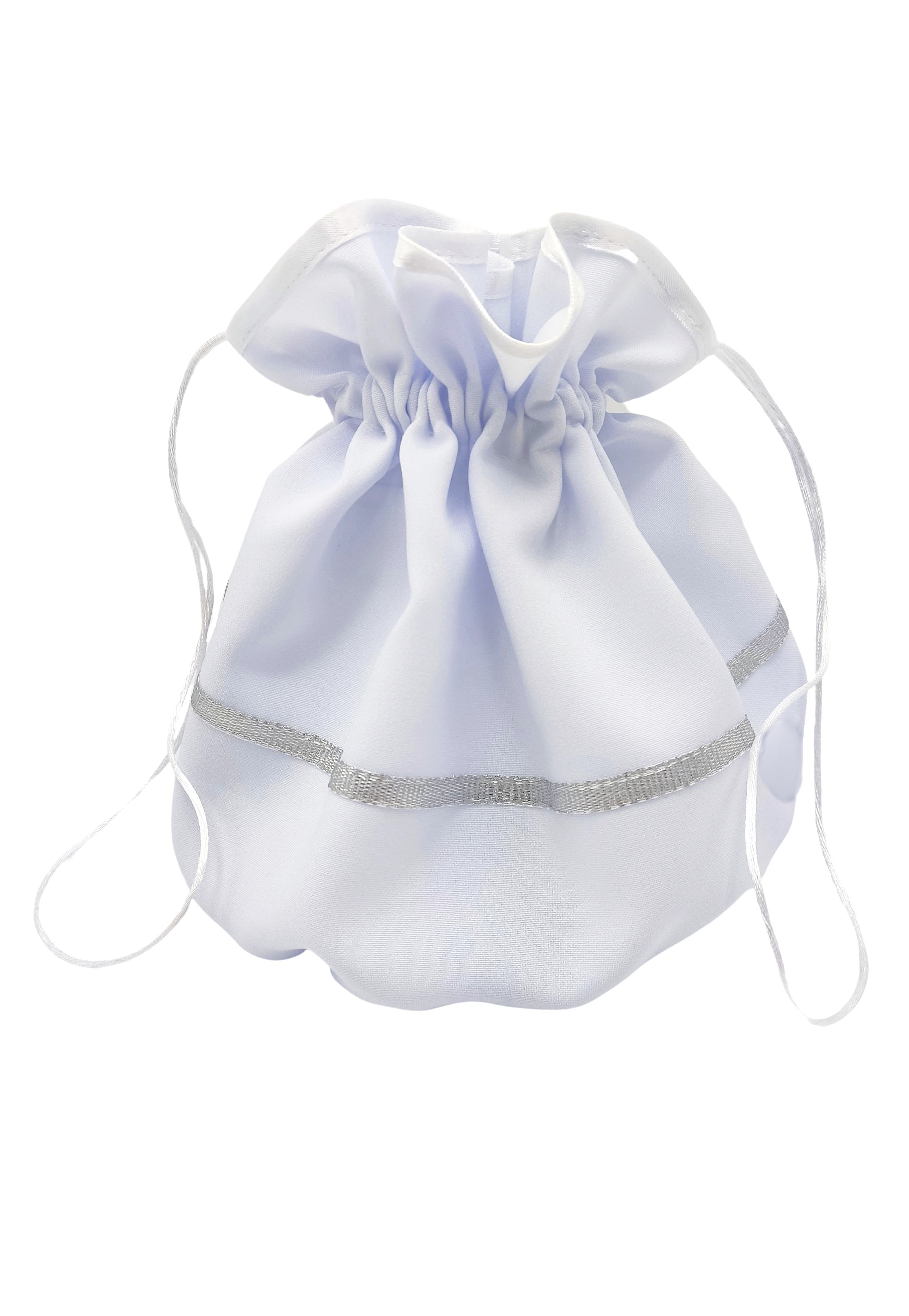 Woreczek komunijny stanowi efektowny i tradycyjny dodatek do ubioru komunijnego dla dziewczynki. Jest alternatywą dla torebki komunijnej. Bez problemu zmieszczą się w nim potrzebne dziewczynce przedmioty, takie jak np. książeczka, chusteczki i tym podobne. Ma mocno usztywnione okrągłe dno, przez co zachowuje swój naturalny kształt. Woreczek jest przeznaczony do trzymania w ręku za sznureczki, które służą jednocześnie do zaciągania wlotu torebki.